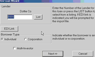 2. Type in your lender # or select list and double click on the lender number or name. 3. Click on the Borrower type (default is individual) 4. Click Next
