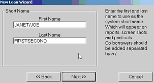 6. Click on Loan Type (there are 24 different options to choose from) 7. Scroll down to the one that best fits your needs 8. Click Next 9. Complete the First Name/Last Name field. To separate the first names with a / If the last names are the same you only need to enter it once. 10. Click Next