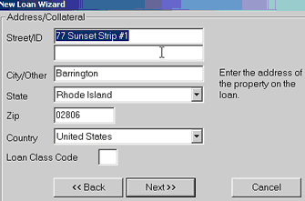 11. Complete the Address/Collateral information and Loan Class Code